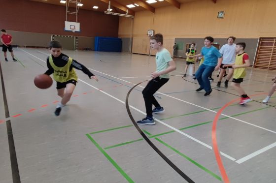 Mit ca. 110 interessierten Basketballfans konnten wir viele Körbe sehen. Da das Ergebnis nicht das Wichtigste ist, spielten die Teams meist klassenübergreifend. So lernten die Kleinen von den Großen und die Großen stellten sich empathisch auf die Kleinen ein. Es hat allen Spaß gemacht und mit etwas Süßem gingen dann alle glücklich nach Hause.