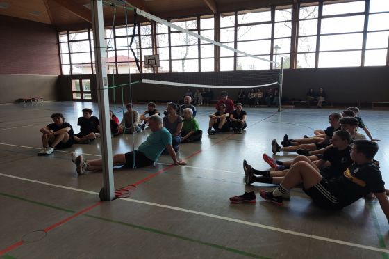 Das traditionelle Lehrer-Schüler-Turnier im Volleyball hatte es in sich. Die Schüler der 10. Klassen stellten zwei starke Mannschaften dem doch schon in die Jahre gekommenen Lehrerteam gegenüber. Mit starken Aktionen und scharfen Aufschlägen konnten die Schüler punkten. Die Lehrermannschaft wehrte sich mit allen Kräften und gewann so einen Satz. Die Hauptsache ist, es hat allen Spaß gemacht und die Stimmung war prächtig und lautstark.