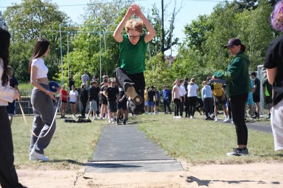 Der Wettergott meinte es gut mit uns. Bei herrlichem Wetter und guter Verpflegung standen Höchstleistungen nichts im Wege. Im Dreikampf (Sprint, Weitsprung, Ballwurf oder Kugelstoß) konnten die Kräfte gemessen werden. Bei Klassenstaffel und Klassenlauf wurde keiner zurückgelassen. Am Ende spielten alle Zweifelderball oder Fußball. Mit 265 Punkten im Dreikampf war Emilia aus der 9c die absolut Beste.