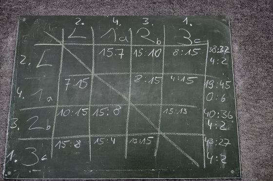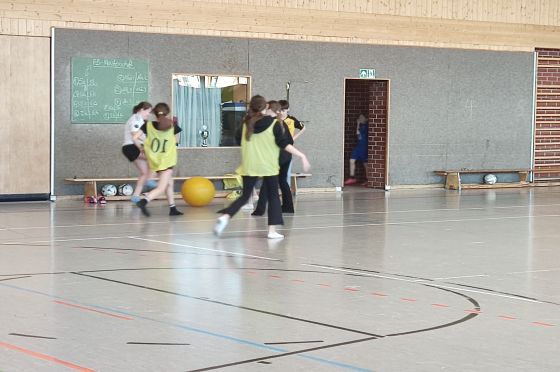 Am Freitag spielten die 5. und 6. Klassen ihre Fußballschulmeisterschaft. Die Mädchen nahmen dafür einen Gymnastikball und haben einfach nur Spaß. Das nennt man Sockenfußball, dabei sind Tore schwer zu erzielen. Bei den Jungs zeigte die Klasse 5a die besten Fähigkeiten. Am Ende stand das Spiel und die Freude an Bewegung im Mittelpunkt.
