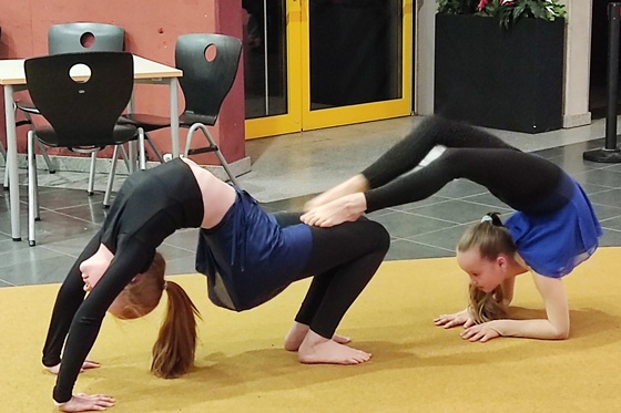 Beim Pyramidenbau sind alle bei der Sache. Im Team macht alles mehr Spaß. Man muss keinen Handstand mehr können, sondern Ideen sammeln, umsetzten und eine Choreografie erstellen. Auf Körperhaltung und Körperspannung wird immer noch viel Wert gelegt. Das Ergebnis kann sich sehen lassen.
