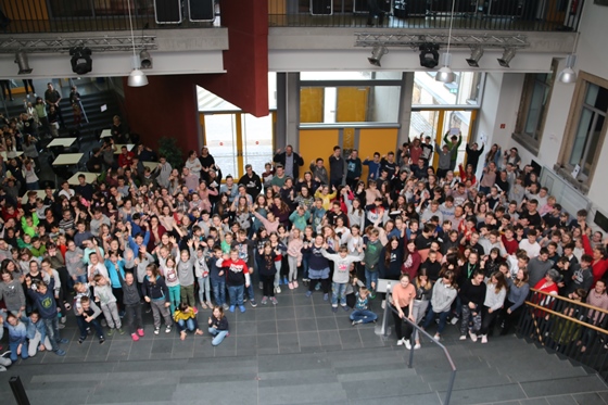 Traditionell gemeinsam in der Sporthalle begannen wir unsere Woche des fächerverbindenden Unterrichts. Sie steht unter dem Motto "Wir und die Welt - die Welt und wir". Dazu konnten sich die Schüler in eine Vielzahl von Projekten einschreiben. Kommunikation spielt in diesem Jahr eine besondere Rolle, zahlreiche Projekte widmen sich diesem Thema.
