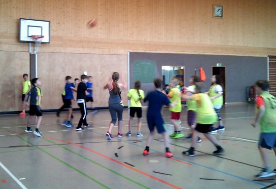 Die Klassen 7 und 9 starteten mit der Basketballschulmeisterschaft. Zielsicher und spielerisch gut organisiert konnten die Mädchen der 9b den Sieg erringen. Die Mixmannschaften der 7a und 7b waren sehr ausgeglichen. Am Ende hat es allen Spaß gemacht.