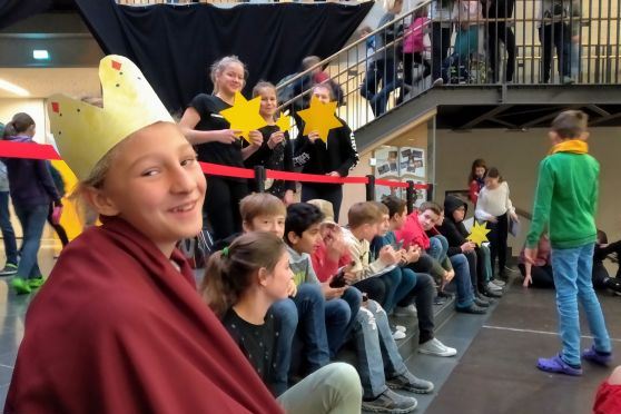 In der Weihnachtszeit bietet die Weihnachtsbühne im Foyer der Schule zu jeder Frühstückspause interessierten Schülerinnen und Schülern die Möglichkeit eines weihnachtlichen Auftritts. So sind die letzten Wochen vor Weihnachten gut gefüllt, heute durch einen weihnachtlichen Tanz der Tänzerinnen und Tänzer des Tanzkurses 5.